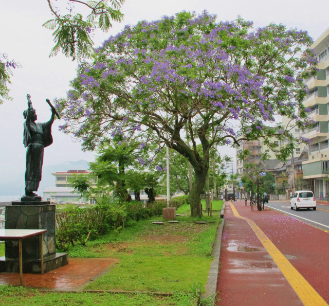小浜温泉街初夏的风景线紫色花瓣迷人眼,治愈身心浪漫情。