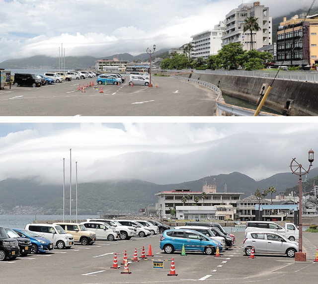 There is a municipal parking lot that can be used for free, but please come to our hotel first.