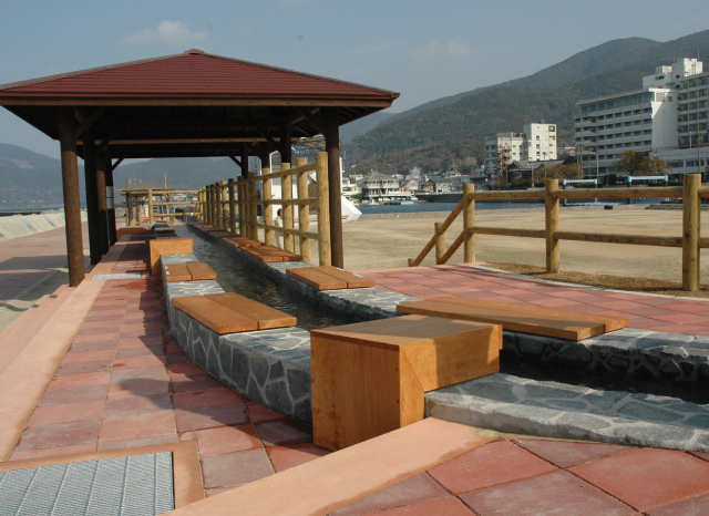 Japan’s longest foot bath (105 meters long) is right in front of our hotel.