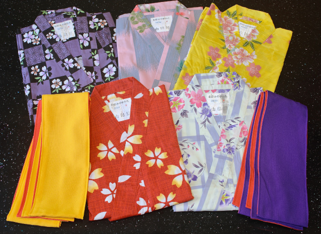We have approximately five types of iroyukata available, and we rent them out for 300 yen.