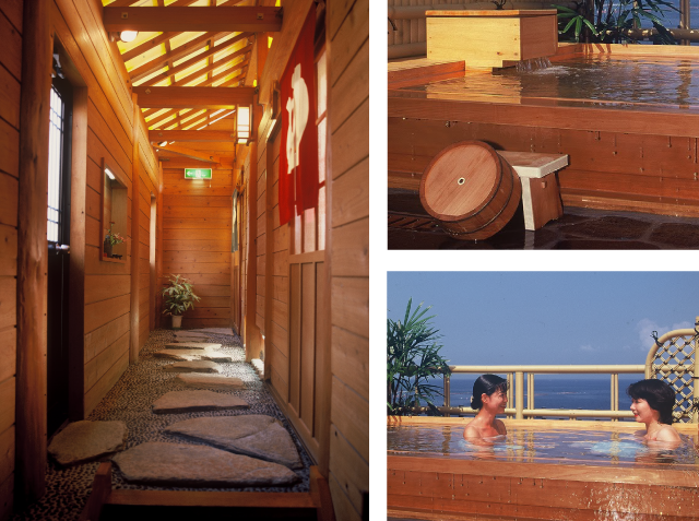 히노키(노송나무)로 만든 전망 노천탕에 몸을 담그며 느긋하게 지내는 시간은 저희 여관이 자랑하는 행복한 한때입니다.