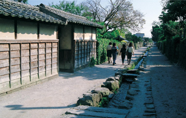 往時を偲ぶ武家屋敷が保存されている風情ある通り。通りの中心に流れる湧水にも心が癒されます。